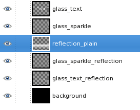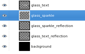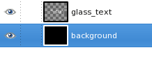 Click “New Layer” button in the layer window and floodfill it to black {#000000} , send the new layer to bottom and rename it to “background” , so that we have the glass texts glowing out of the dark.