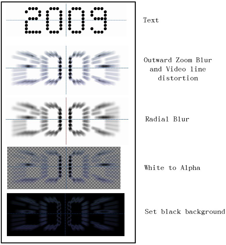 3. With the “2009” layer selected, apply a long outward zoom motion blur